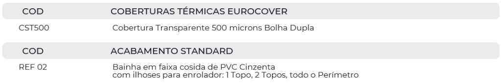 Pertencente à gama de bolhas Solar mais translúcida, esta cobertura é mais resistente por ser mais espessa, constituída por uma película de polietileno de 500 microns Transparente, com o propósito de transmitir para a água o máximo de luz solar, e da mesma forma a energia térmica. Reduz drasticamente a evaporação.