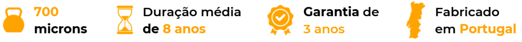 • Proteção U.V.: 0,6% Aditivo UV Standard +0.9% Aditivo
