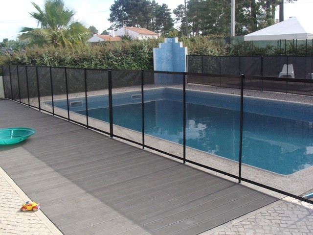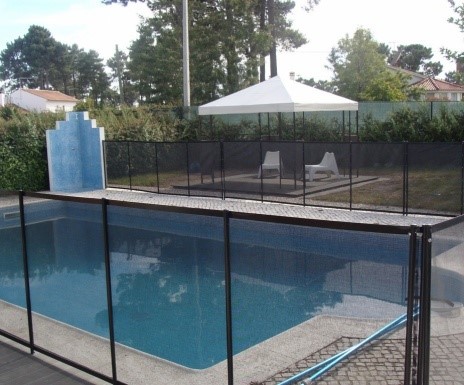 É fornecido 1 poste a cada metro linear de vedação. Pode ser fornecida com tubos adicionais de segurança em alumínio anodizado ou lacado na horizontal (de metro em metro).