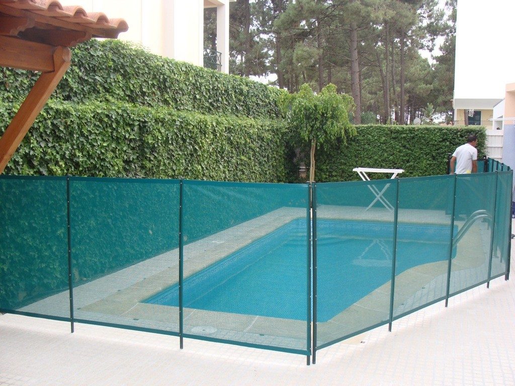 Pode ser fornecida porta de segurança em alumínio c/fecho automático ou porta de rede com armação tubular de alumínio e fecho c/protecção.