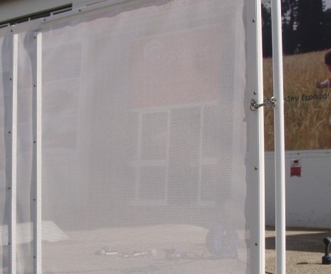 Desmontagem da vedação: a vedação pode ser desmontada e enrolada, ocupando um espaço bastante reduzido.